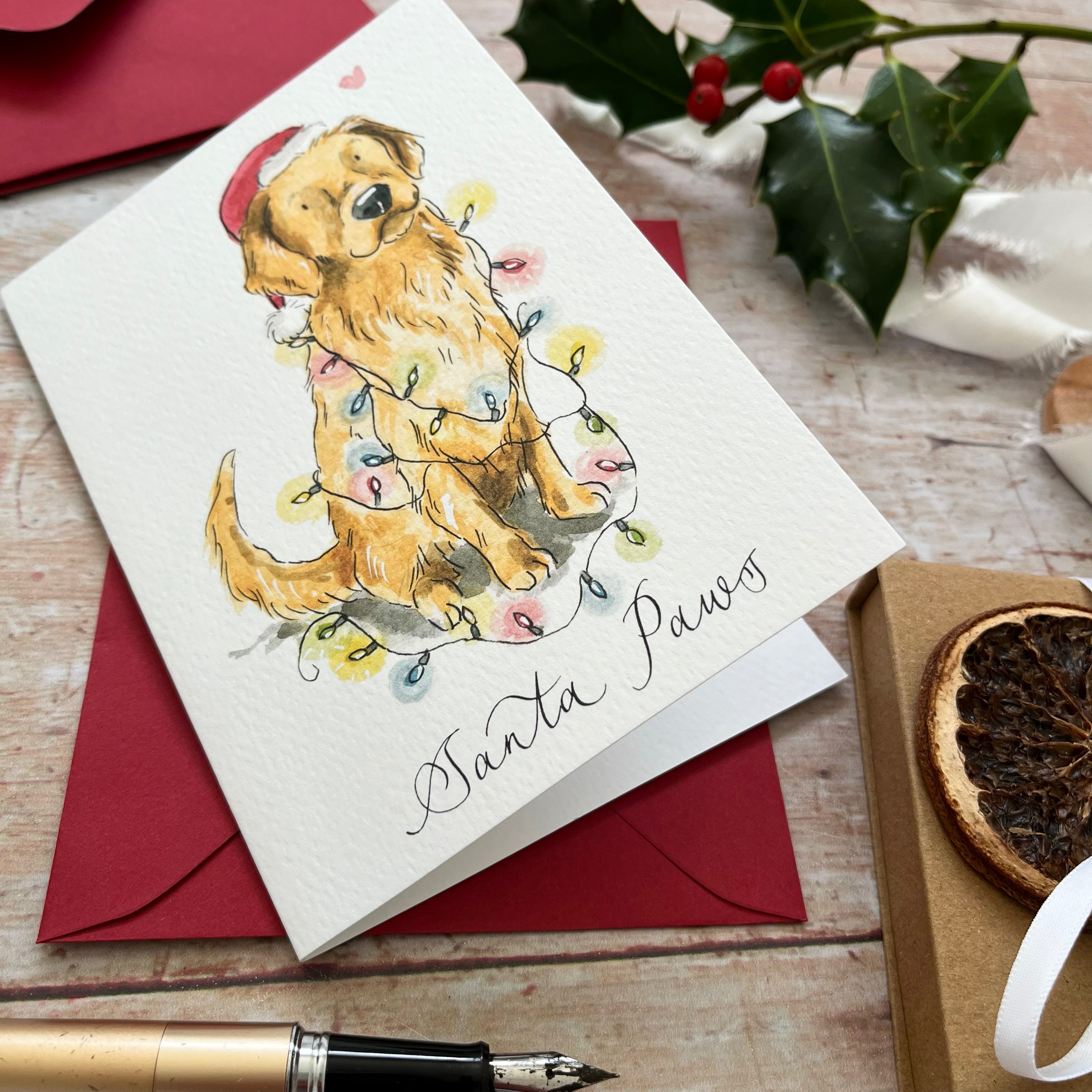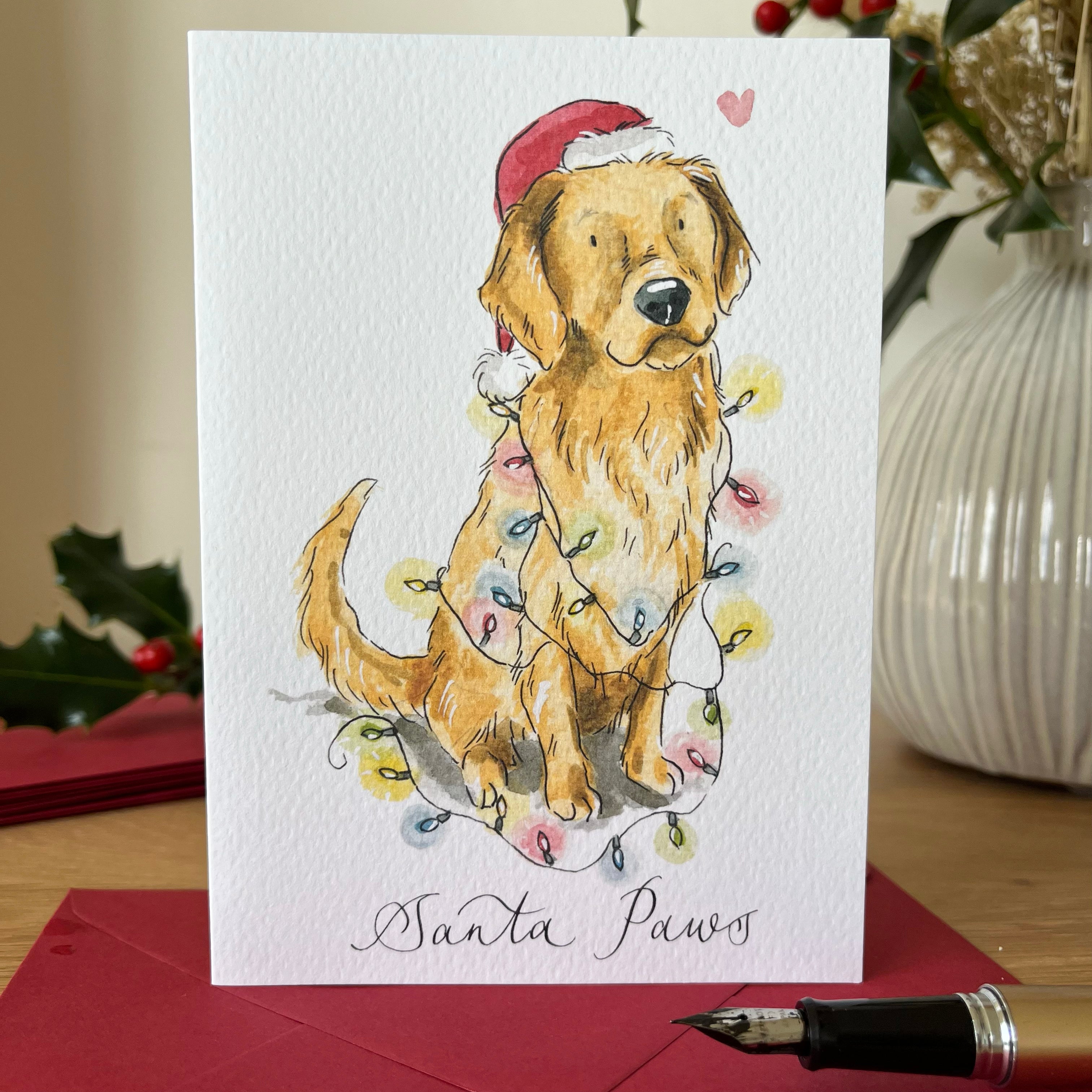 'Santa Paws' - Send festive wishes with this beautiful card of a festive retriever.