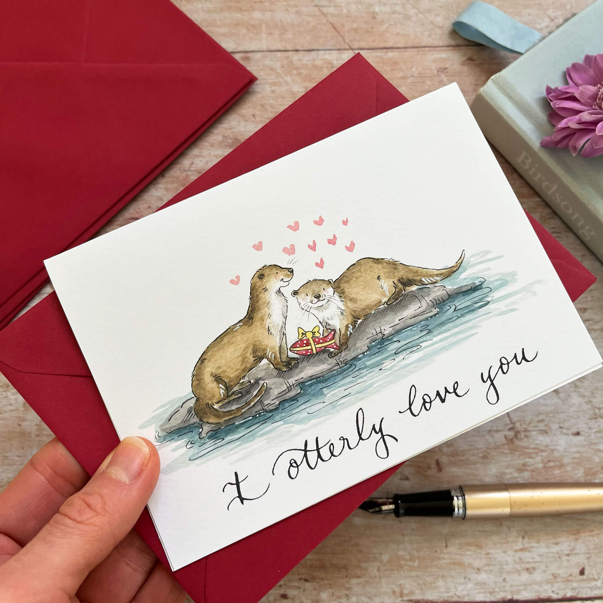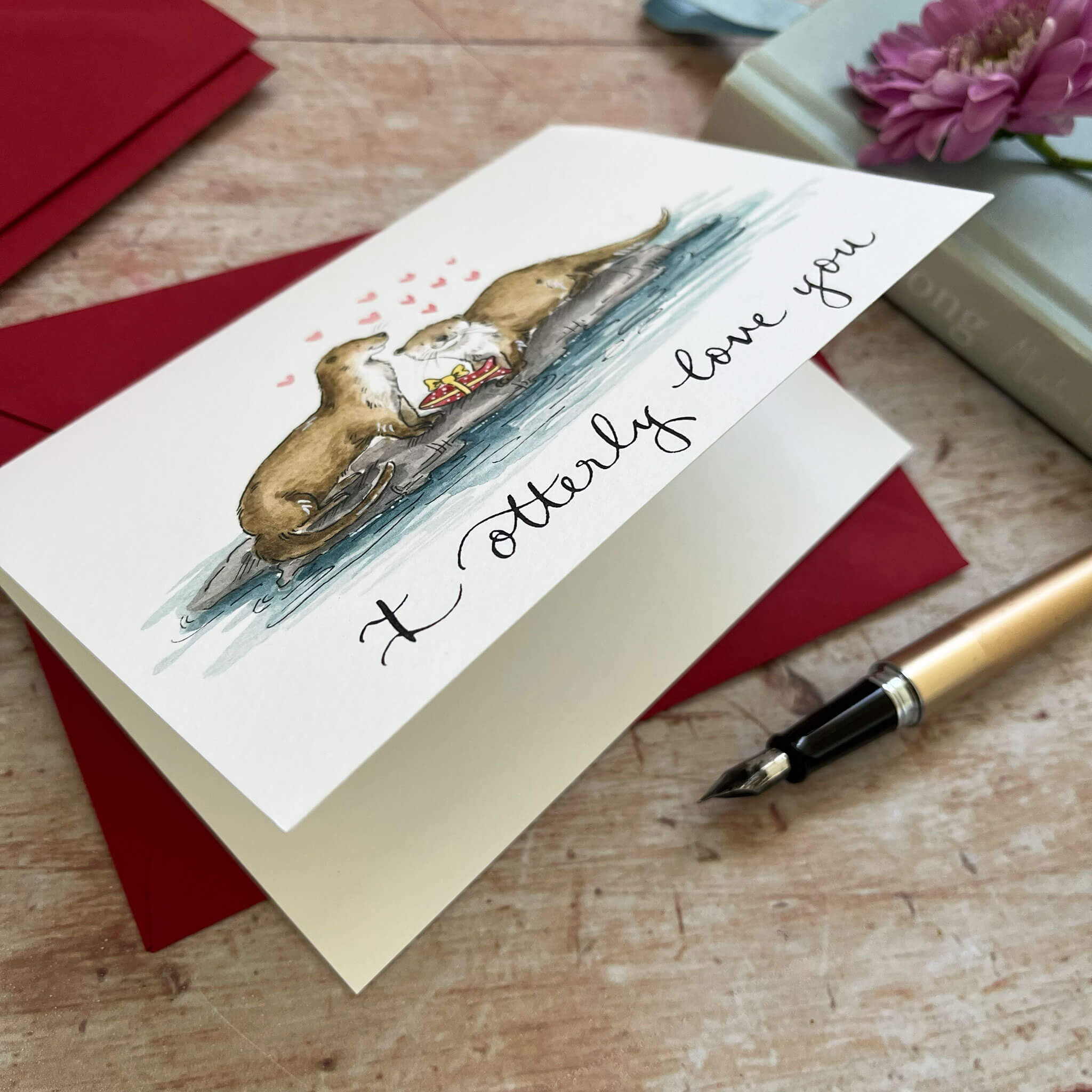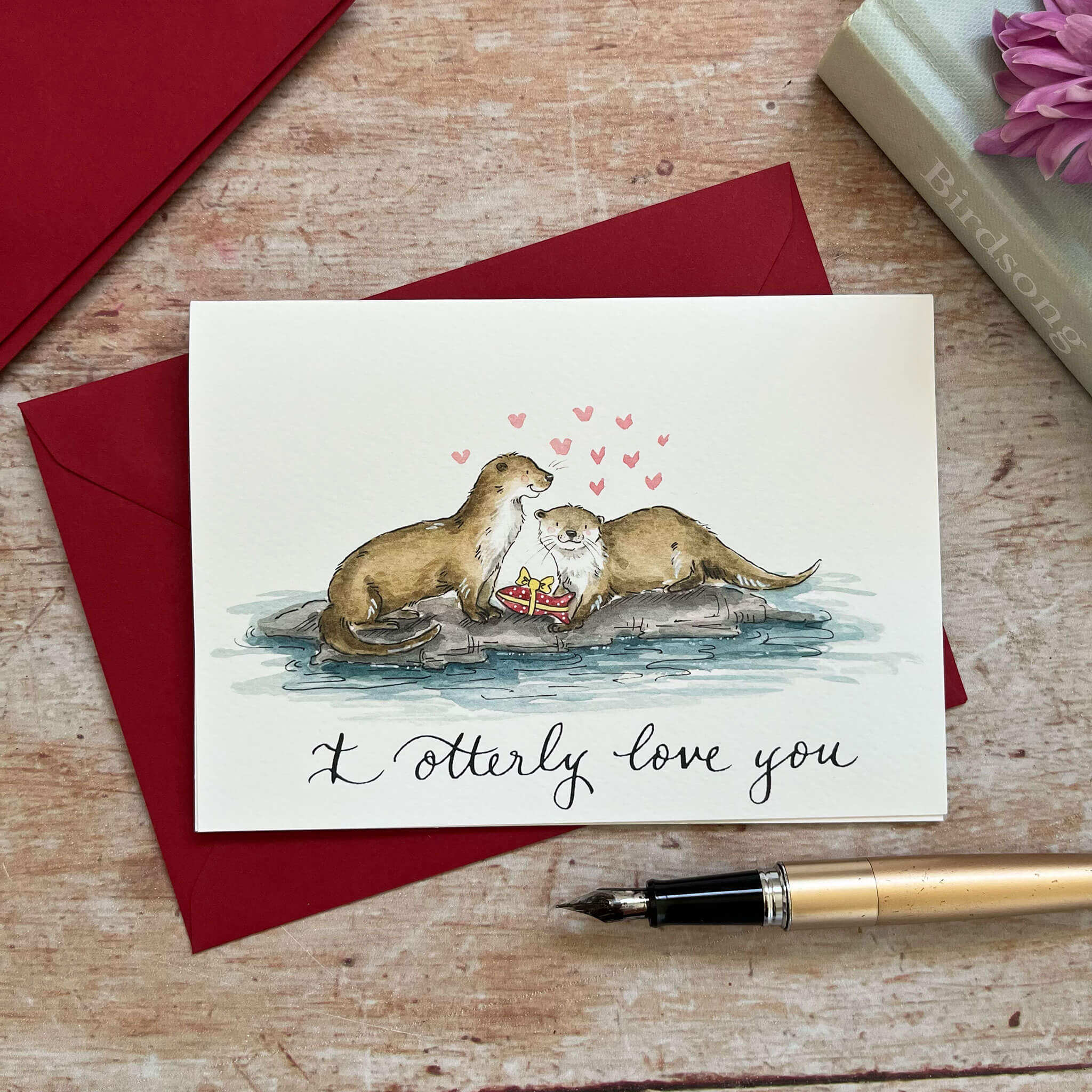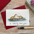 A perfect Valentine’s Day or anniversary card card for otter lovers! This card shows 2 adorable otters, with a present in between them, with the message ‘I otterly love you'.