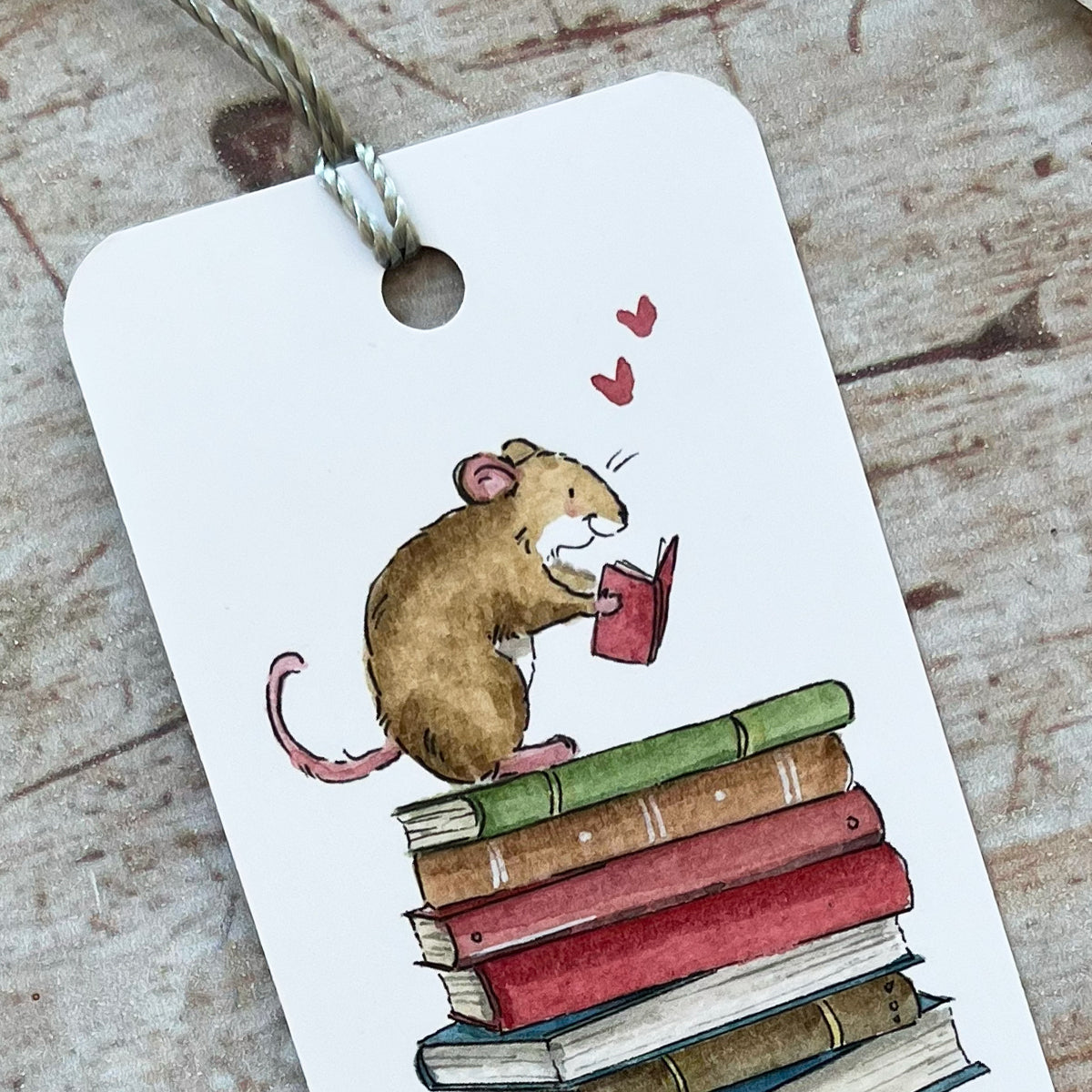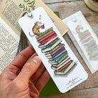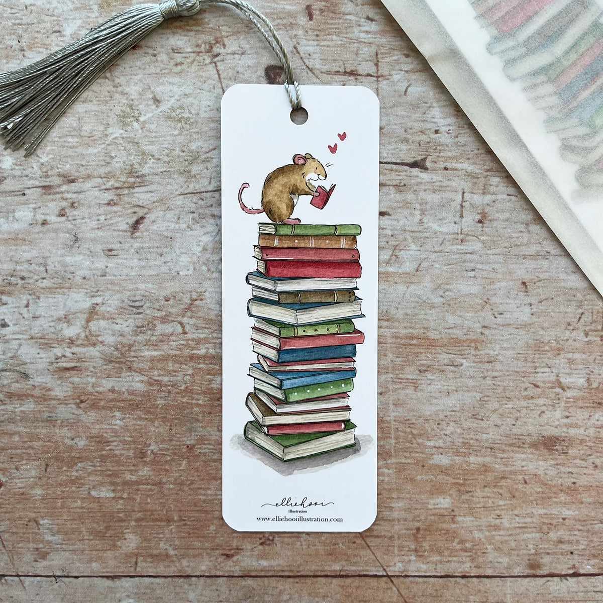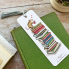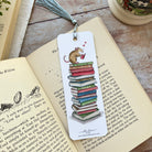 This beautiful bookmark is perfect for book lovers. Featuring an adorable mouse reading on top of a stack of books. This bookmark comes with a luxury silver thread tassel.