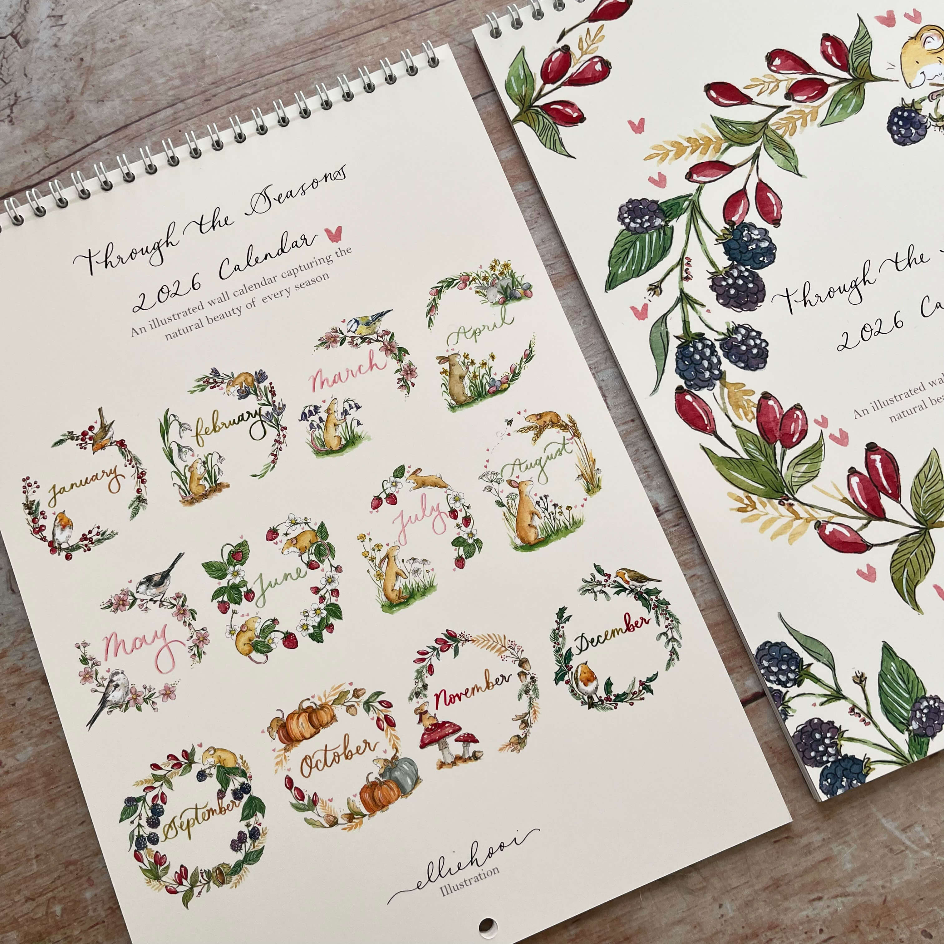 Wander through the gentle charm of the British countryside, month by month, with this beautifully hand-illustrated calendar by Ellie Hooi Illustration. Each page captures the quiet magic of the changing seasons - from snow-kissed fields and spring blooms to golden harvests and winter’s calm. A celebration of nature’s shifting moods and the simple joys each month brings, Through the Seasons invites you to pause, notice, and delight in the little things that make every moment special.