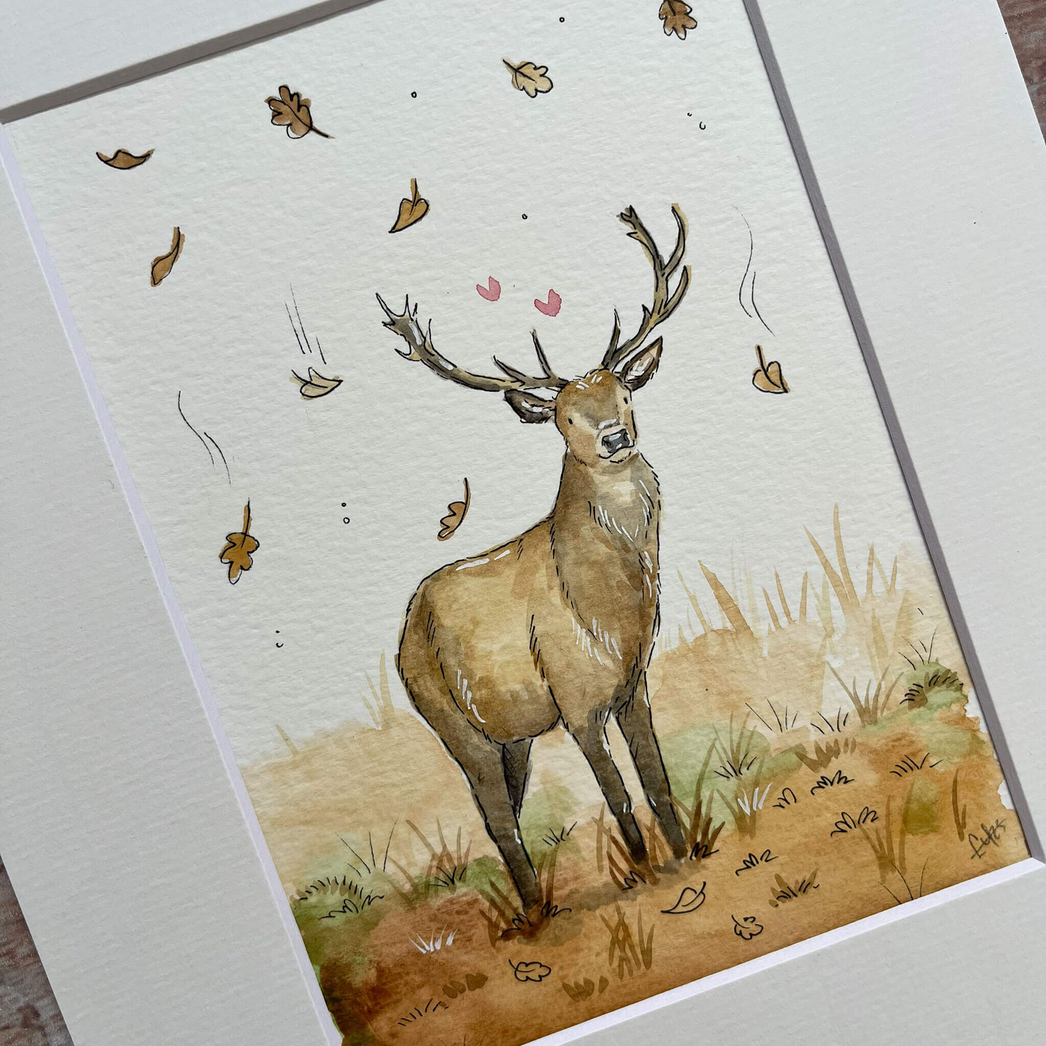 An original watercolour illustration of 'Struan' the Stag. This watercolour illustration is one of a kind and shows a handsome stag amongst the Scottish Autumn foliage. The name 'Struan' is Scottish for the word 'stream'. One of a kind as the original artwork.